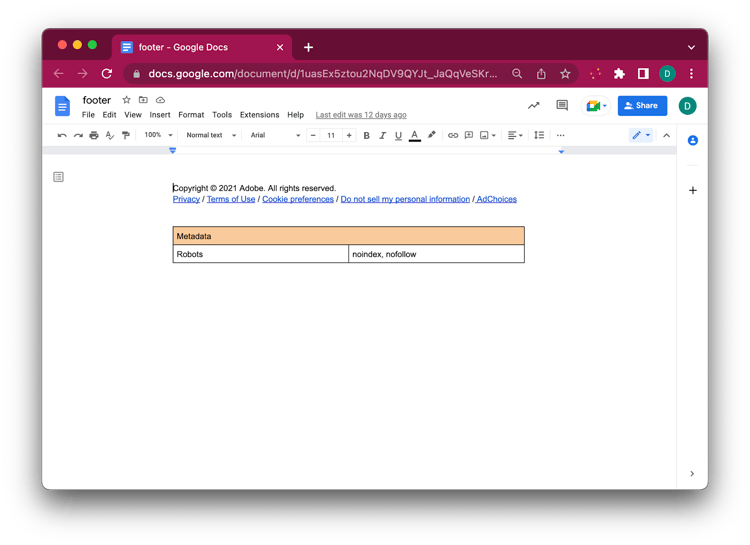 The content for the footer is loaded as a fragment and is by default authored in a footer (or footer.docx) document.