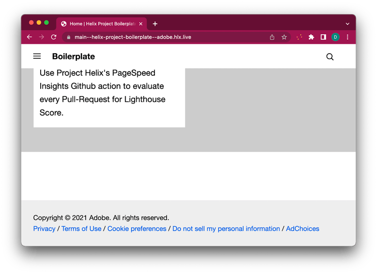 The footer block is loaded by default in the boilerplate project into the <footer> element.