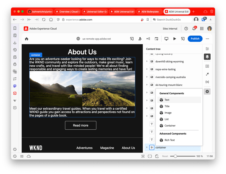 The Universal Editor provides a modern and intuitive GUI for authoring your content by adding and arranging blocks, which the Universal Editor refers to as components.
