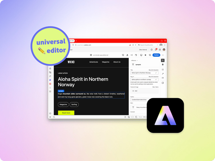 - The Universal Editor offers a new and modern UI for content authoring.
