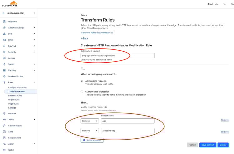 Enter a name (e.g. Required AEM headers) and complete the form as follows (replace www.mydomain.com with your domain):